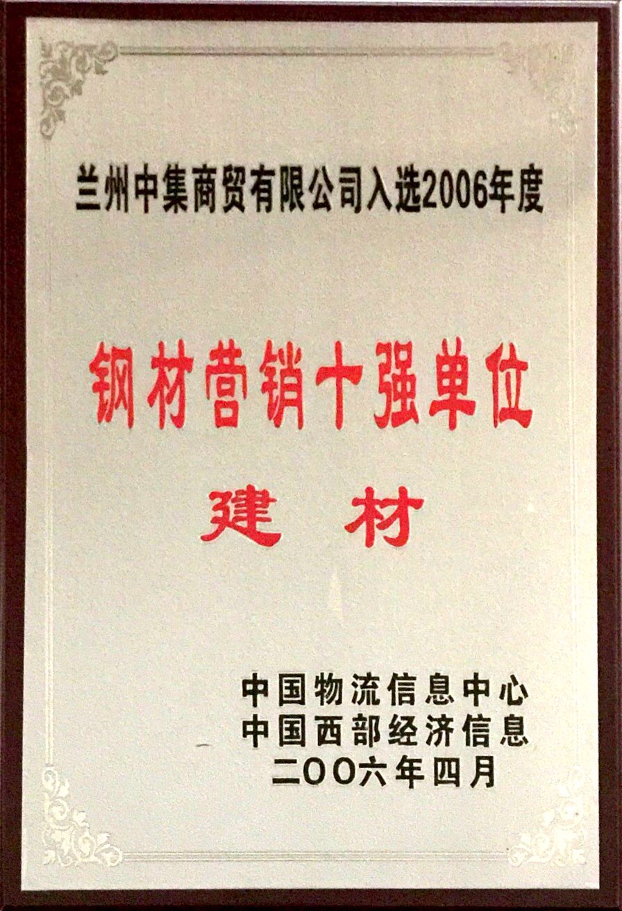 2006年度鋼材營(yíng)銷十強(qiáng)單位(建材)