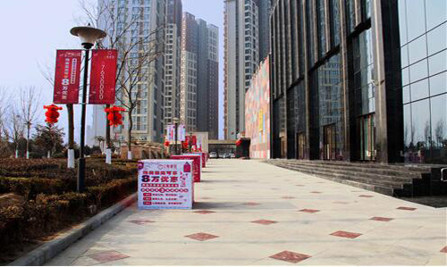 中集•青春里營銷中心外,道旗和廣告箱上紅白相間的活動宣傳畫面,營銷中心門頭火紅的大燈籠……無不彰顯著青春里在新的一年里的積極、熱情、向上、進取的精神。