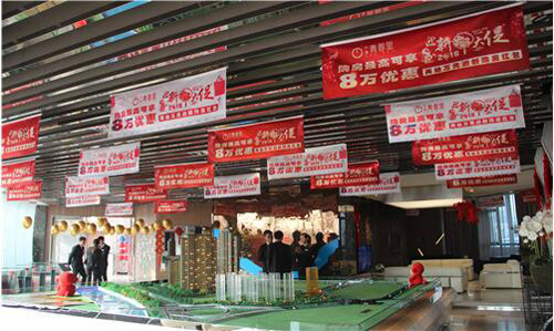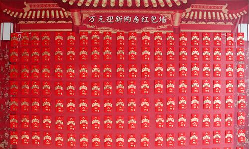 墻頂上吊下來金光燦燦的金蛋,充滿著喜慶;凡認籌客戶即可現(xiàn)場砸金蛋,領取家電大禮;同時可以抽取最高18888元的購房紅包(代金券)。