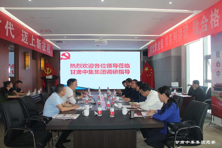 2019年5月21日上午,山西省非公經(jīng)濟(jì)組織和社會(huì)組織工委副書記、市場(chǎng)監(jiān)管局黨組成員、副局長王國強(qiáng),山西省市場(chǎng)監(jiān)管局非公黨建處處長朱志東一行6人,在省委非公經(jīng)濟(jì)組織和社會(huì)組織黨工委副書記、甘肅省市場(chǎng)監(jiān)管局黨組成員、副局長肖建勝,甘肅省市場(chǎng)監(jiān)管局非公經(jīng)濟(jì)組織黨建工作處處長劉玉圣,蘭州市市場(chǎng)監(jiān)督管理局黨組成員、副局長李繼軍,安寧區(qū)市場(chǎng)監(jiān)督管理局黨組成員、副局長蘇潤彬陪同下蒞臨集團(tuán)黨委調(diào)研非公企業(yè)黨建工作,集團(tuán)公司黨委書記、董事長周啟濤攜集團(tuán)公司黨委委員向參觀調(diào)研組匯報(bào)企業(yè)黨建工作。